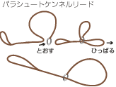 - ●直径1cmの伸縮性のあるヒモで中身は撚糸のくみヒモを使用。中~大型犬の訓練にも最適!